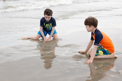 It was very windy, cloudy and not too warm, so we only spent about an hour at the beach, but that was enough for the boys to splash and build in the sand and get their beach fix in.