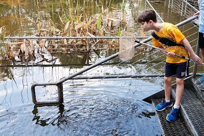 The morning after the football game, I had planned an outing to Sheldon Lake State Park with Henry's Cub Scout den. After a late night, morning came way too soon, but Henry and I headed out to learn about pond ecology with his den.